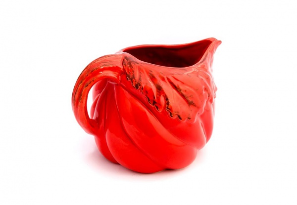 • Elegante jarra em ceramica italiana  na tonalidade vermelho  em gomos torcidos e alça robusta integrada ao conjunto, medindo  L: 31 x P: 2 x A: 19 cm