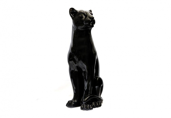 • Elegante escultura de pantera em posição sentada, confeccionada em cerâmica italiana  com acabamento esmaltado preto alto brilho , elemento decorativo de forte impacto visual. medindo 43 x 36 x 89 cm de altura