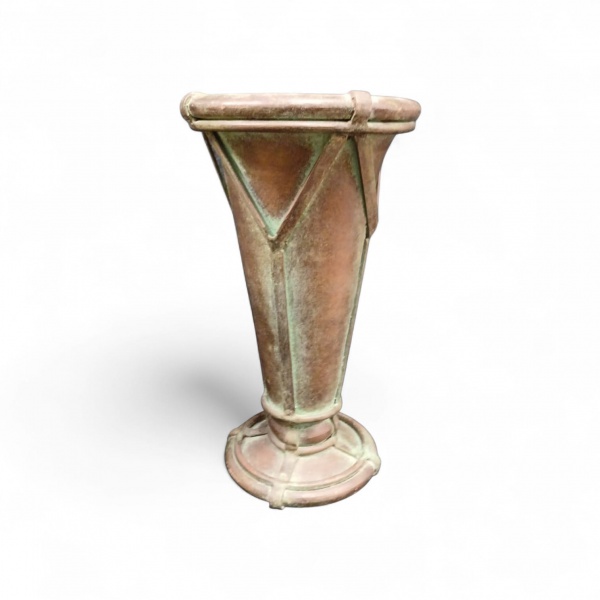 • Antigo porta guarda - chuva em cobre no estilo Art Deco  com detalhes geométricos em relevo , base redonda , altura 38 x 20 cm  diâmetro