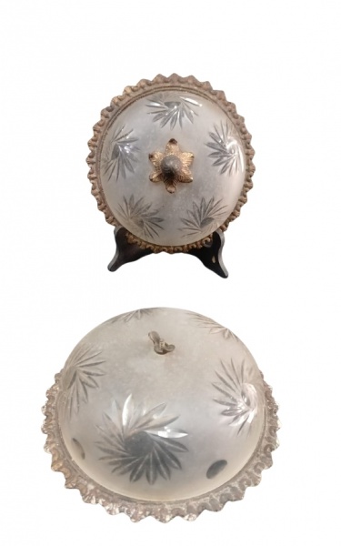 • Dois  plafons em bronze e cúpula satine lapidado  ( no estado)   ,falta parte elétrica,  diâmetro 22 cm    OBS : falta acabamento na ponta de um plaffon