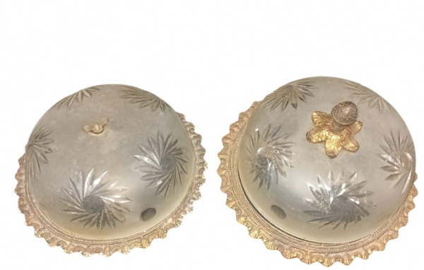 • Dois  plafons em bronze e cúpula satine lapidado, diâmetro 22 cm  ( no estado)