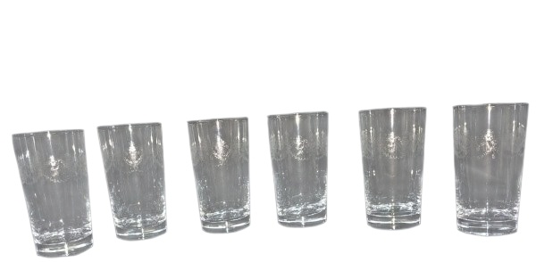 • CRISTAL  D'Arques -  Seis  copos altos  em cristal translúcido, lavrado com flores e folhas , ao gosto ST. LOUIS, altura 16 cm