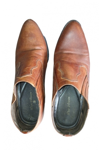 • bota western cano baixo em couro legítimo, tamanho 43 , marcas de  usado .