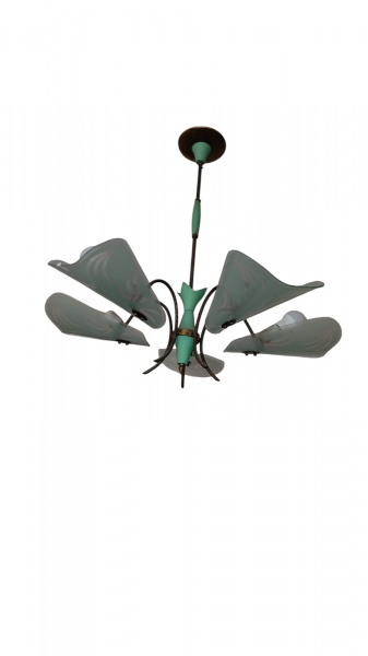 • Lustre Década de 50 / 60  - Designer Anônimo- Com vidros Curvos. Em ótimas condições ,funcionando - Altura: 0,93 cm  - Largura: 0,69 cm  aproximadamente, funcionando  ( retirada com agendamento na Tijuca )