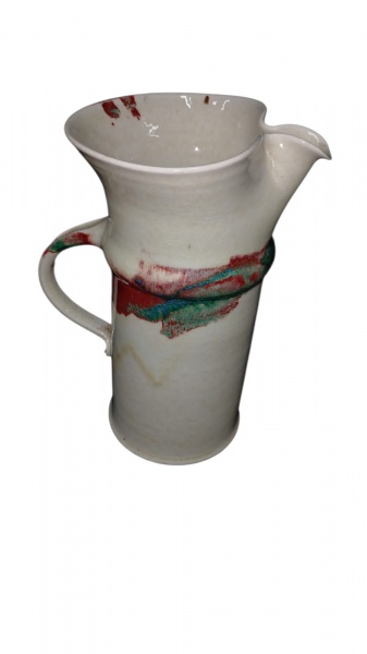 • Jarra de cerâmica esmaltada e   vitrificada , alça e bocal estilizados, Altura 25 cm e diâmetro 15 cm