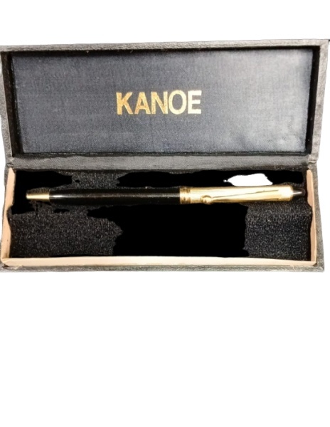 • Estilosa caneta esferográfica da marca Kanoe, preta com dourado ,funcionando
