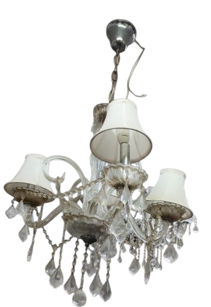 • Lustre para 4 lâmpadas com estrutura e pingentes em vidro  com cúpulas em tecido -medindo aproximadamente 90 x 50 cm   OBS:  NO ESTADO