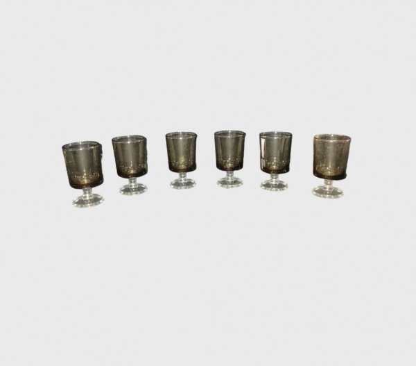 • VIDRO FRANCÊS, seis (6) taças  bojo na cor ambar , fuste e base em bolacha incolores, marca France, medindo 10 cm altura.