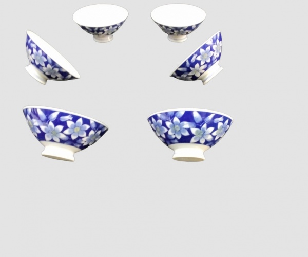 • Seis bowls em porcelana japonesa  azul e branca  decorados com flores , medindo 5 x 12 cm.