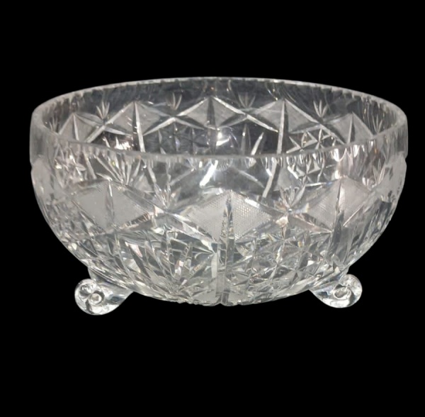 • TCHECOSLOVAQUIA - Centro de mesa em denso cristal tcheco, formato circular apoiado sobre quatro pés, farta lapidação, Medindo  15 x 30  cm.