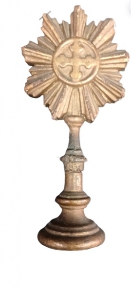 • Antigo Ostensório em madeira com resquicios de  dourado, altura 17  cm. Brasil séc. XIX ( no estado )