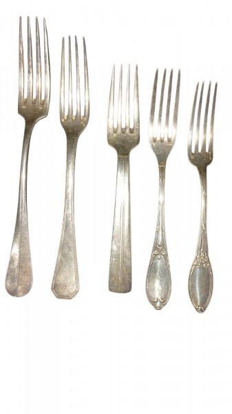 • Cinco (5)  garfos em metal espessurado a prata , medindo o maior 22  cm. NO ESTADO
