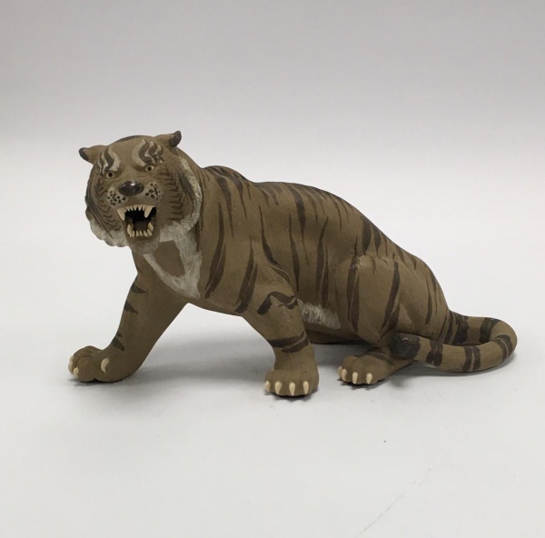 • China, Shiwan. Escultura de Tigre de Shiwan Ware.  Cerâmica de Shiwanzhen. Foshan. Guangdong. Shiwan Ware é Patrimônio Cultural Imaterial Nacional da China. Impressionante  expressão realista. Excelente estado de conservação. Altura 14 cm x Comprimento 25 cm