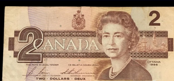 • Estampa Rainha Elizabeth II , Nota de 2 DOLLARS, reverso PássaroBem  conservado